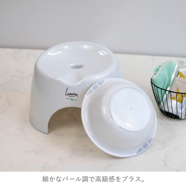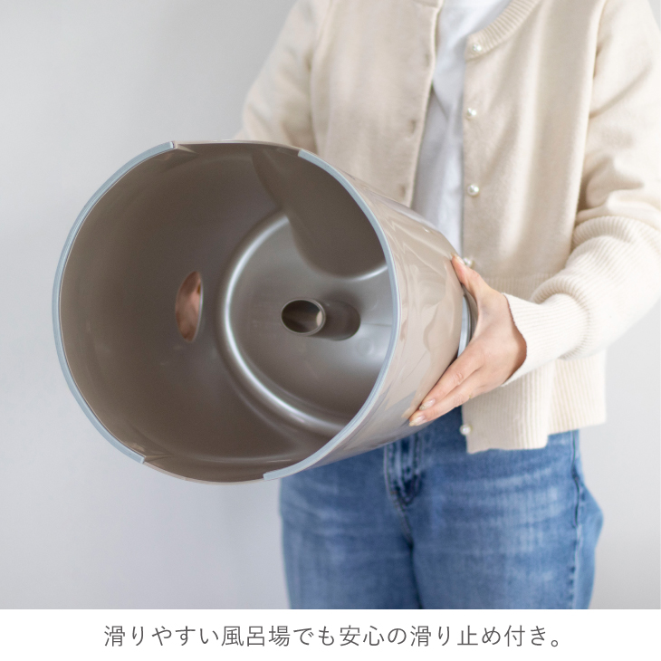 バスチェアの裏面をぐるりと囲む滑り止め設計。立ち座りの動作を安定させ、毎日の入浴時間をより安全にサポートします。