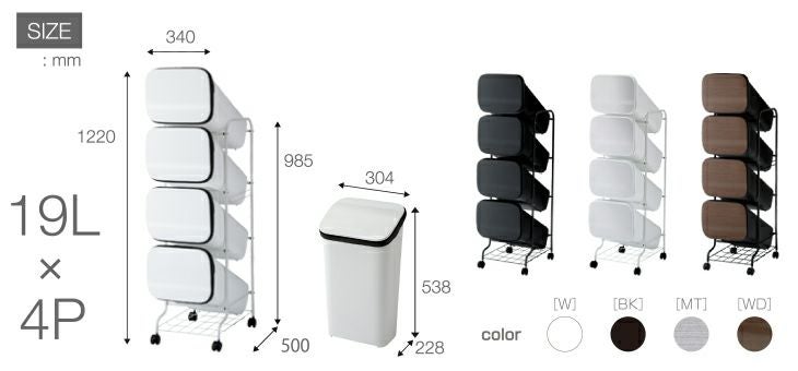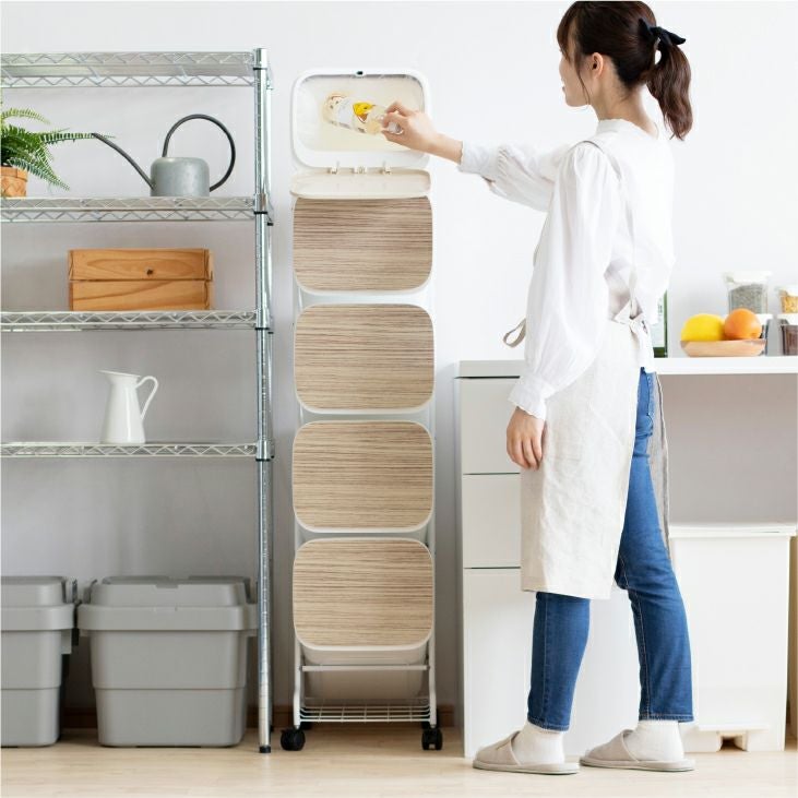 4段の省スペース縦型分類ゴミ箱