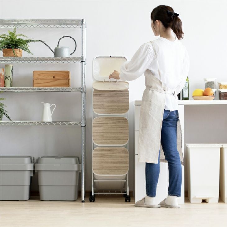 3段の省スペース縦型分類ゴミ箱