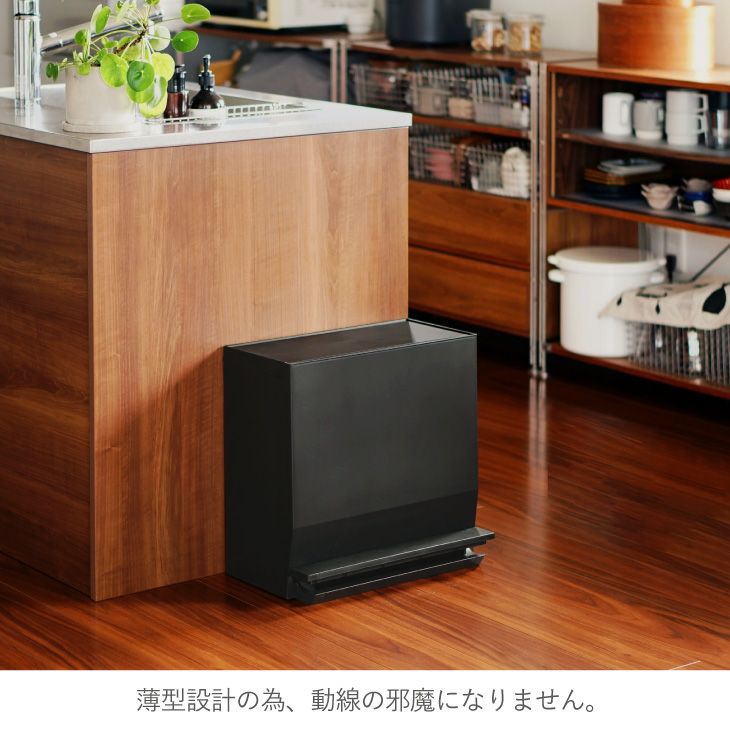 ゴミ箱としても収納ストッカーとしても使えるスリムな形状 SOLOW 通路で使えるペダル分別ストッカー2段・45L