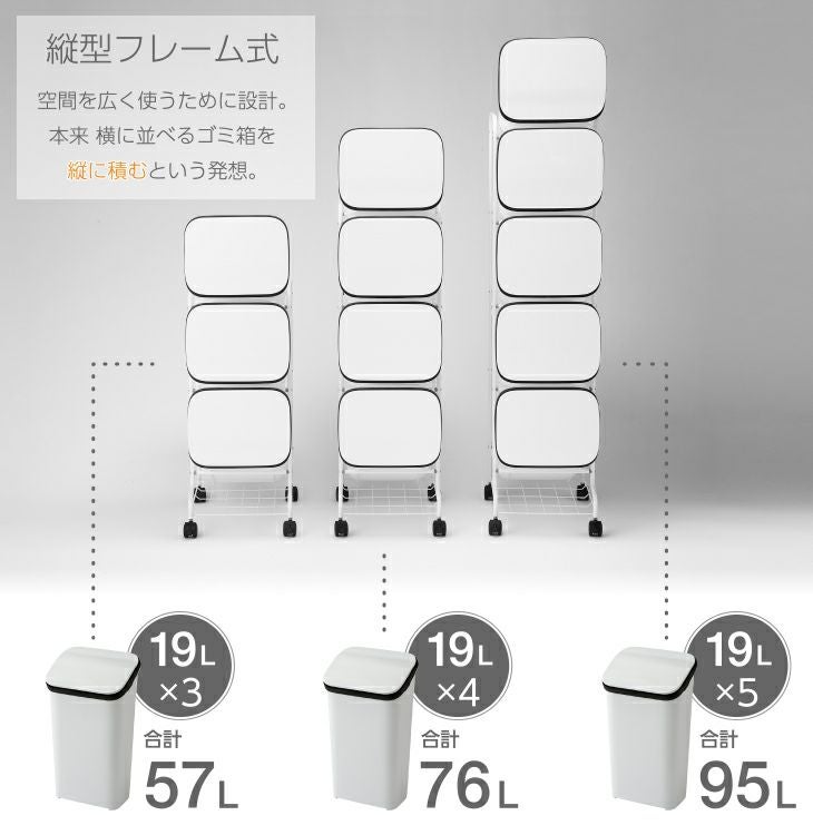 5段の省スペース縦型分類ゴミ箱
