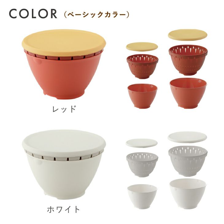 洗う・水切り・レンジ加熱・保存がこれ1つで ボール コランダー Sセット