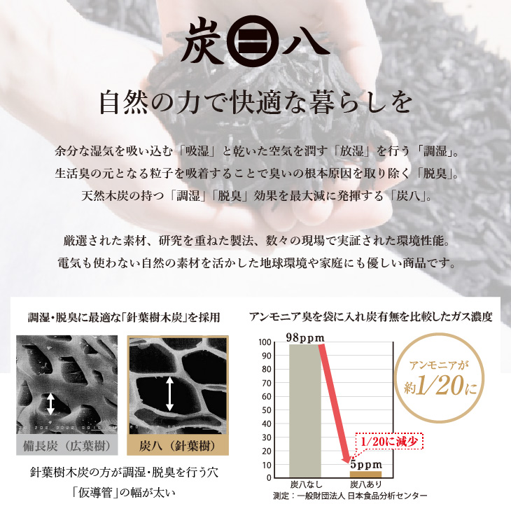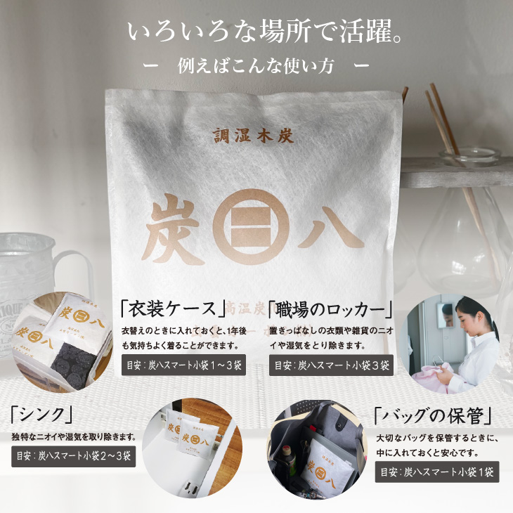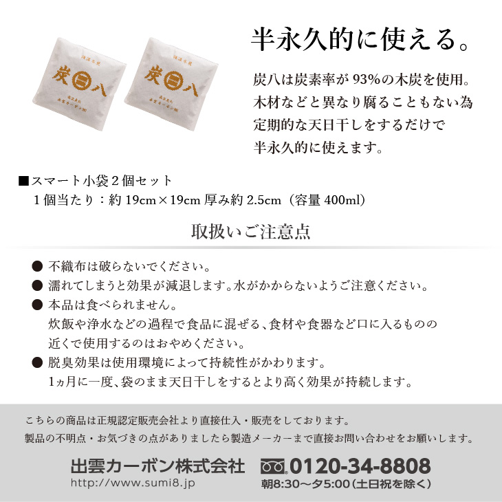 除湿剤・湿気対策として。 半永久的にくりかえし使える出雲屋炭八 小袋2袋セット
