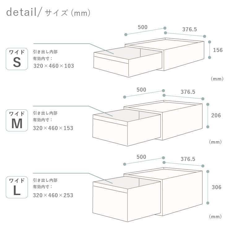 引き出し内部有効内寸:横320×奥行460×高さ153(mm)