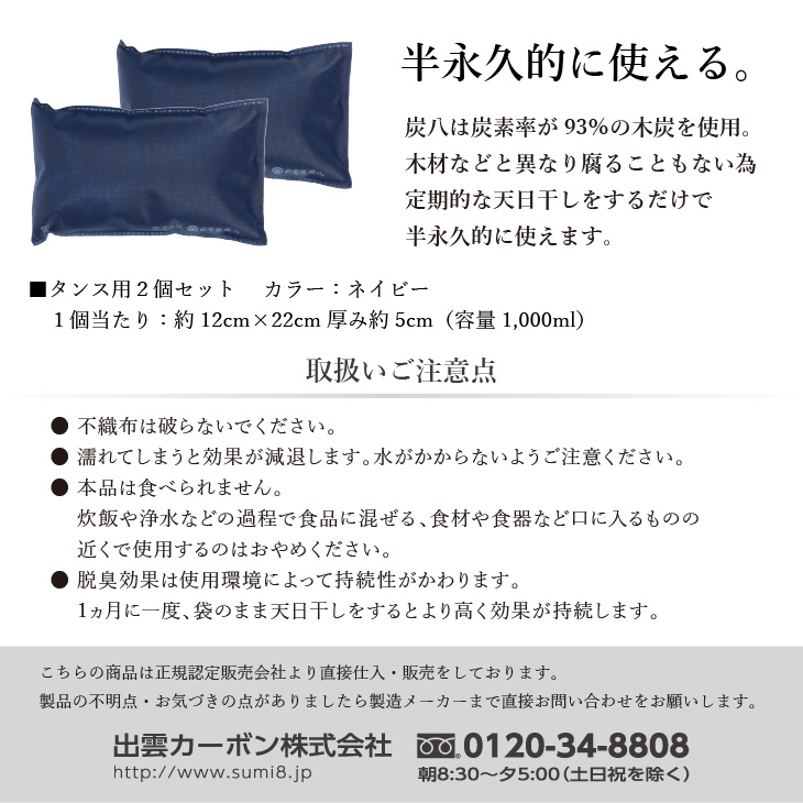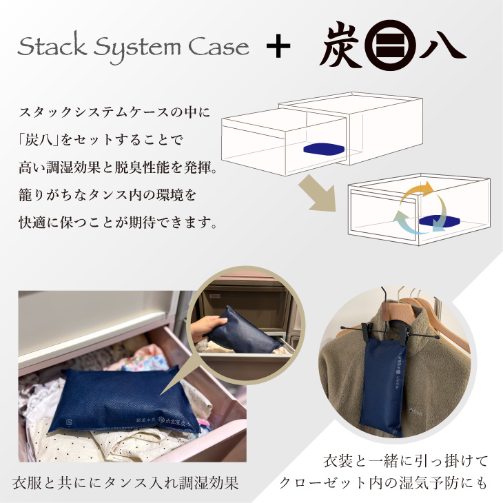 調湿木炭 出雲屋炭八 と収納ボックスのセット販売 炭八タンス用【2個セット】+ RISUスタックシステムケース ワイド【2段セット】