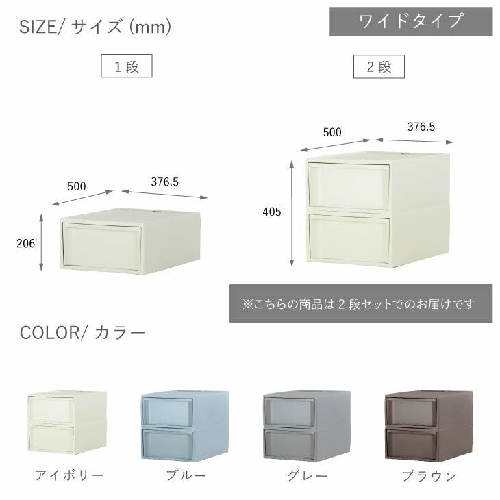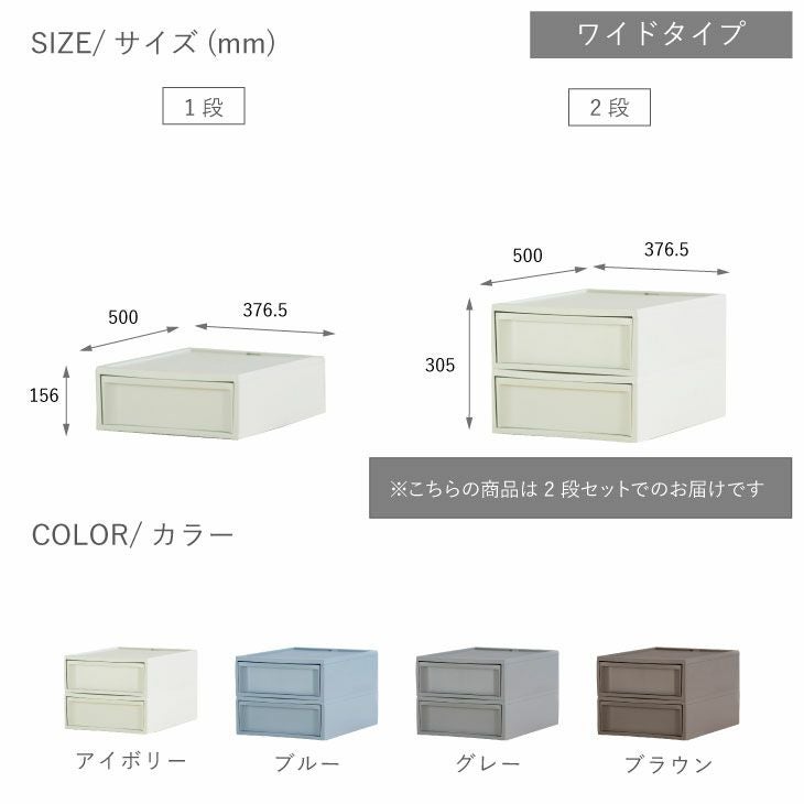 スタックシステムケース ワイドS 2段セット(引き出し収納ボックス)