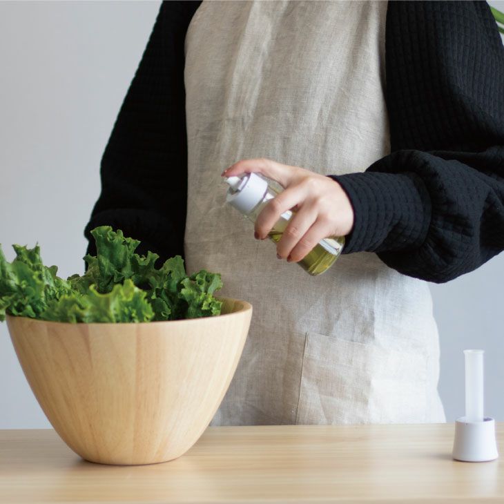 手を汚さず均一にスプレーできるからパスタやサラダもヘルシーに