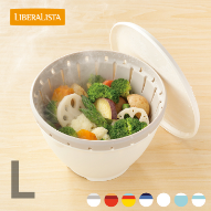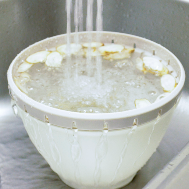 食材を洗う際に便利な流水穴付きのコランダー。食材が溢れ出る前に水だけを流せます。