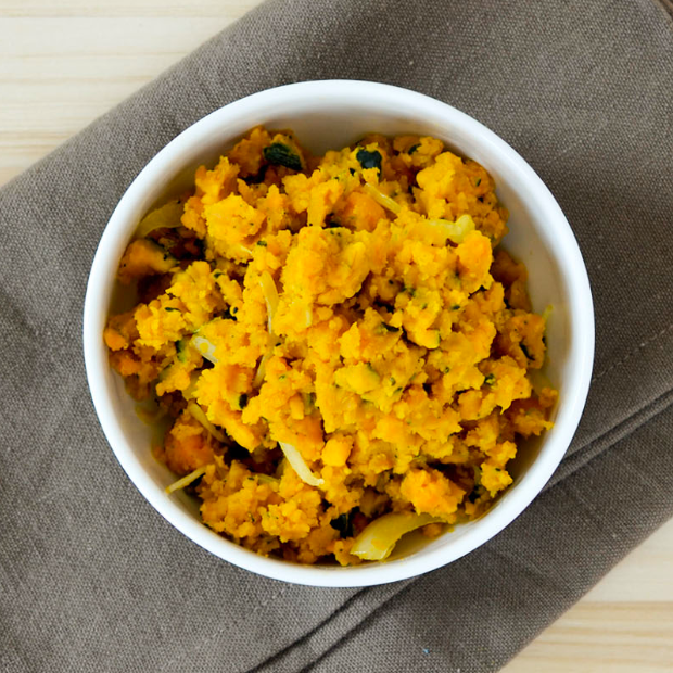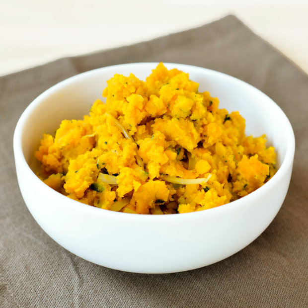 マッシュ状のかぼちゃサラダにしたい場合は、加熱後熱いうちにつぶすとなめらかになります。