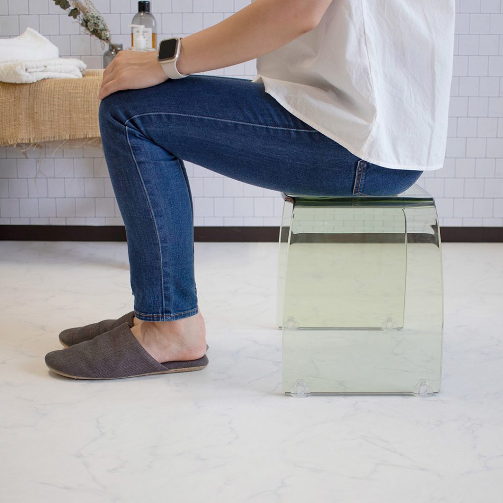 特に厚みのあるアクリル一枚板で作られたバスチェアは、適度な重量感があるため、浴室で滑ったり倒れたりしにくく、簡単には破損しない堅牢さを持っています。