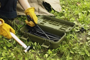 4Lの容量があり、ペグケースやペグハンマーをはじめ、コンパクトバーナー、ファイヤースターターなどの火おこし周りのアイテムなど細々したギアの収納が可能に。