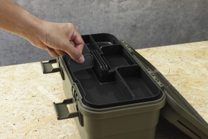 別売りの仕切り板などを使えばさらに細々したギアの収納が可能に。