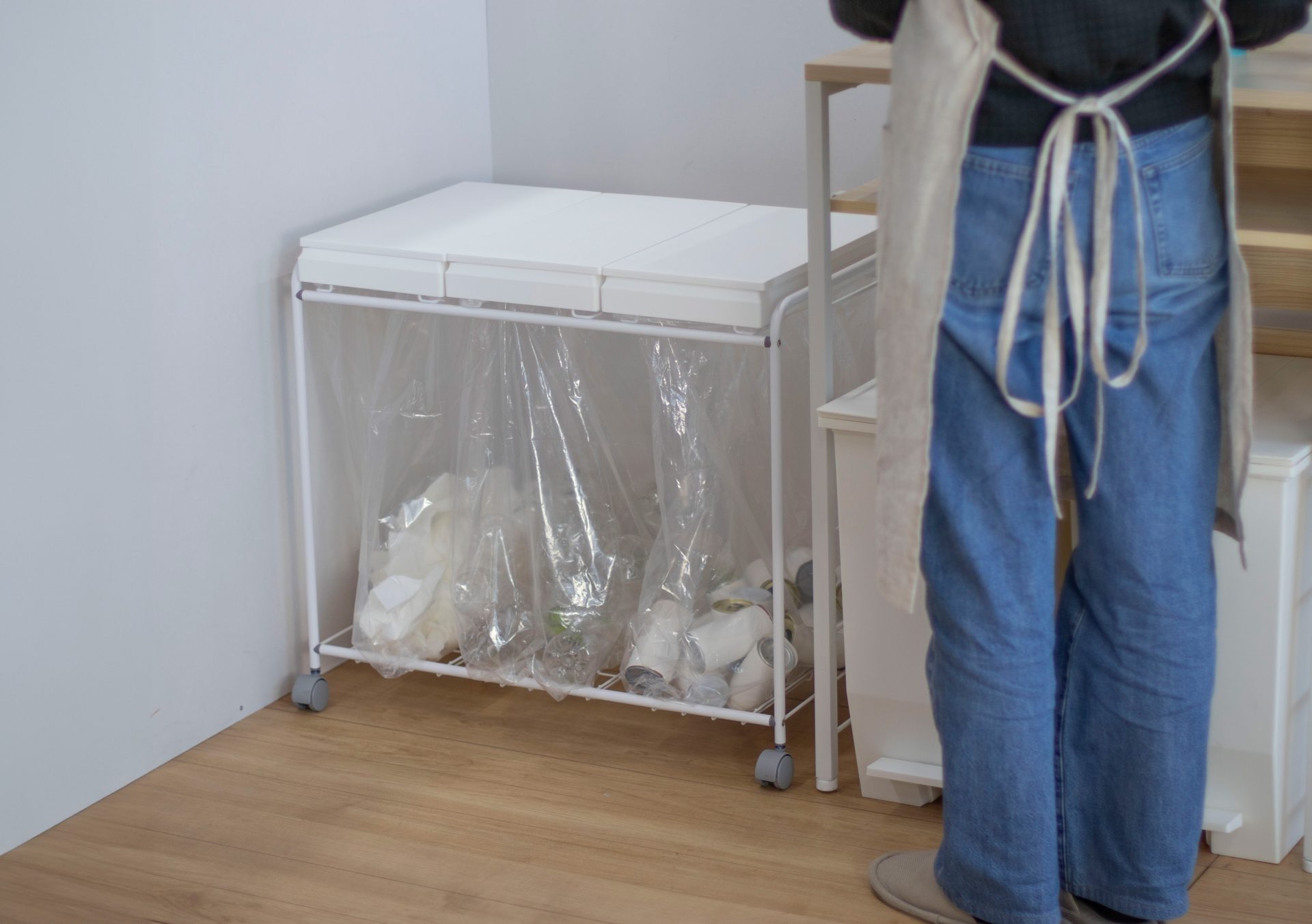 ボックスタイプのゴミ箱だとどうしても袋に余裕があった状態でも交換を余儀なくされてしまいますが、ワゴンタイプならめいっぱいゴミを入れた状態まで袋を活用できます!