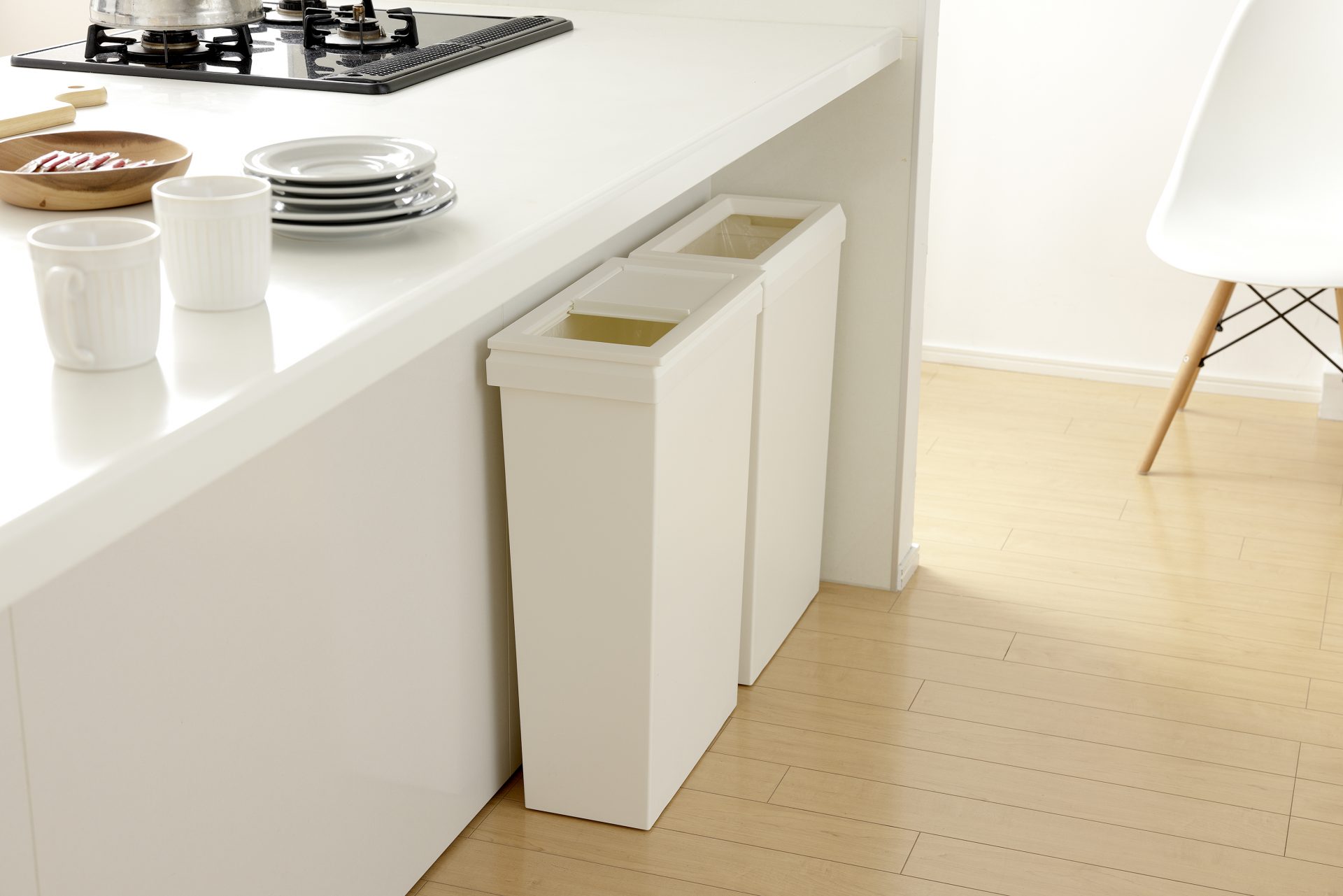 SOLOW 隙間で使えるスリムダストボックス フルーオープン40Lは蓋がなくゴミをそのままゴミ箱に捨てやすい設計