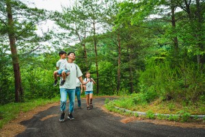約30分程度の森散策。遊歩道は歩きやすいように整備されており、気軽にトレッキングを体験できます。