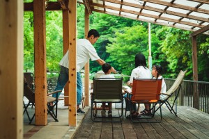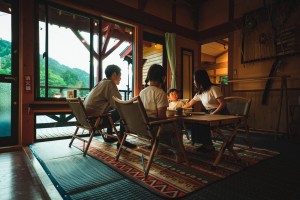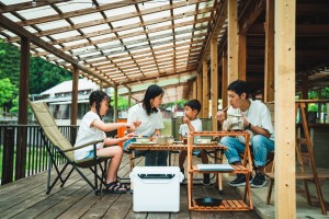 先日私が撮影に伺った際にも、平日にもかかわらずお子様連れのお客様で大変賑わっており、小川で魚取りを楽しむご家族やガレージ内の大自然が一望できるベランダでリラックスされるご家族など