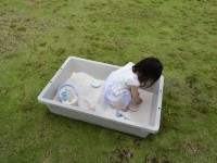 こちらはリスが直営する公式オンラインショップでしか購入することのできない限定アイテムでご家庭用の簡易砂場として発売されている「ララサーブル」ですが、砂を入れる代わりに水を張ることで簡易のプールにもなります。