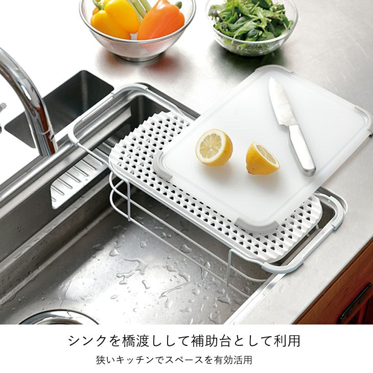 シンクに渡して作業台スペースの拡大や 裏返せば水切りカゴとしても使えます