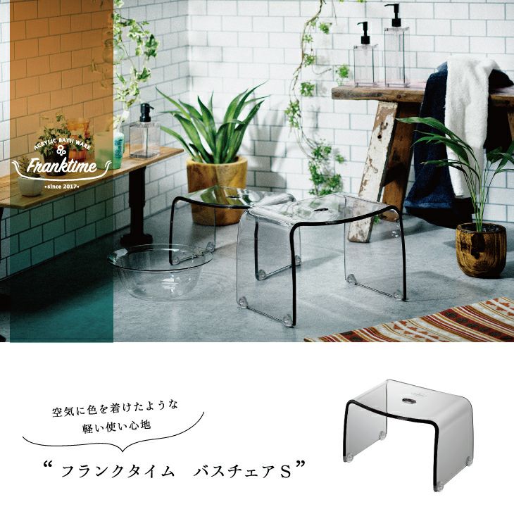 他の画像を見る アクリル製のお手入れしやすい風呂椅子 フランクタイム バスチェアーL 送料無料 販売価格 ¥ 7,280 税込 まるで空気のような透明感 軽量で扱いやすくオシャレなバスチェアLサイズ。(高さ30cm) お気に入りに登録する